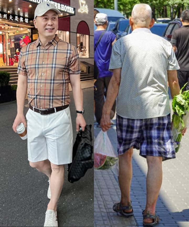 如果一味地坚持老旧的审美以及穿搭观念,那么大多数中老年男人在穿短裤时,就很容易掉入“油腻陷阱”,一踩一个坑,不是邋里邋遢,就是油腻土气。