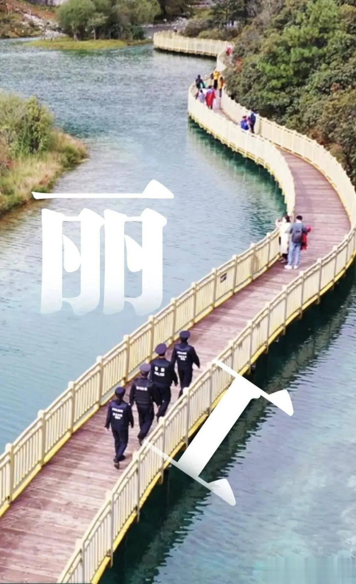 移步蓝月谷景区,清澈水流之上的木桥旁,四名身着警服的玉龙县公安局玉龙雪山派出所民警正并排巡逻,步伐坚定有力。这一幕被定格在“云南警方”的镜头里,成为景区安全保障的生动缩影——他们的背影面向游客,守护着身后的欢声笑语,用不间断的值守与巡查,构筑起游客心中最可靠的“安全盾”,为假期的和谐有序奠定了坚实基础。